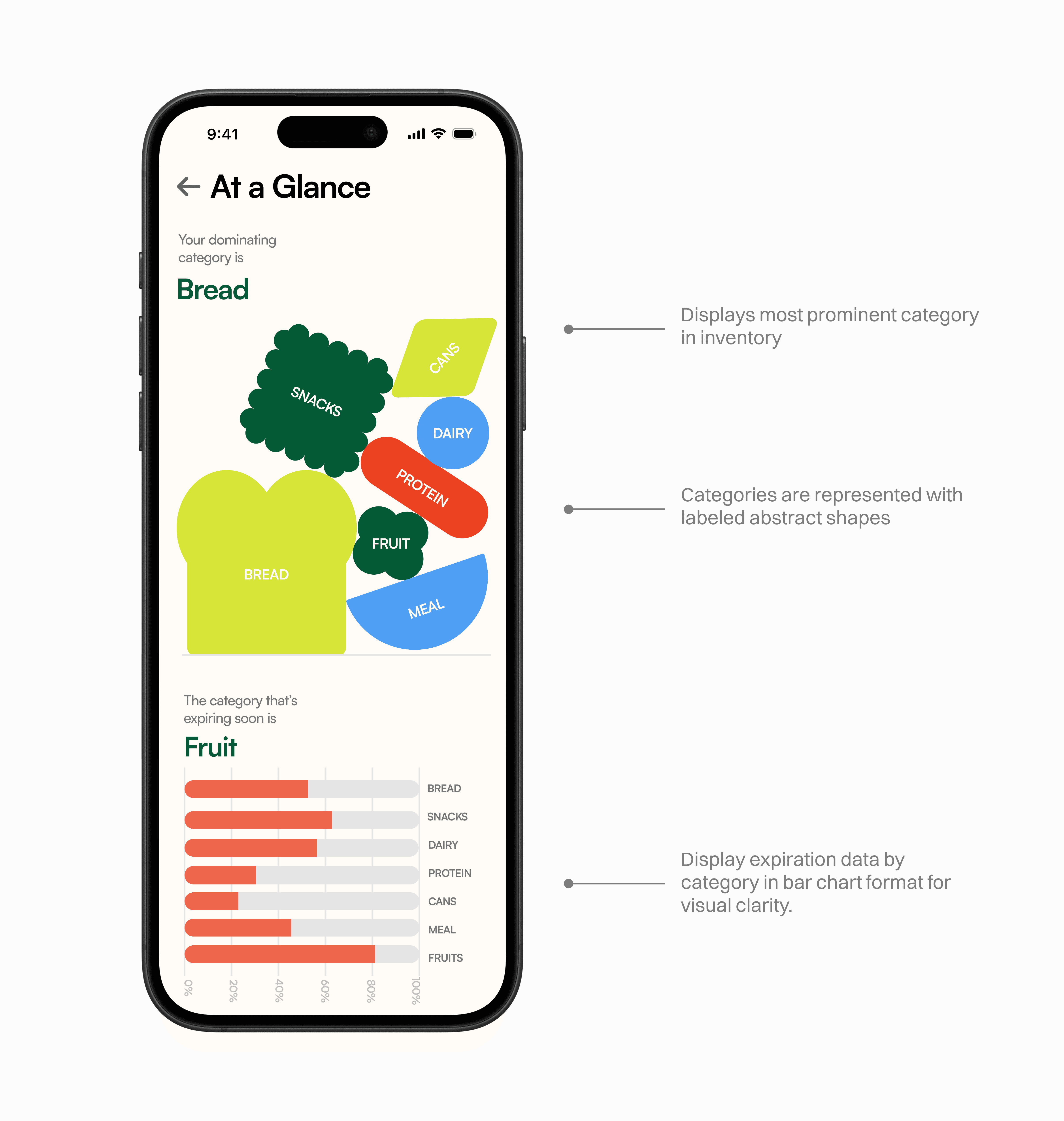 I want a high-level visual summary that highlights key categories and expiring categories without scanning every item.